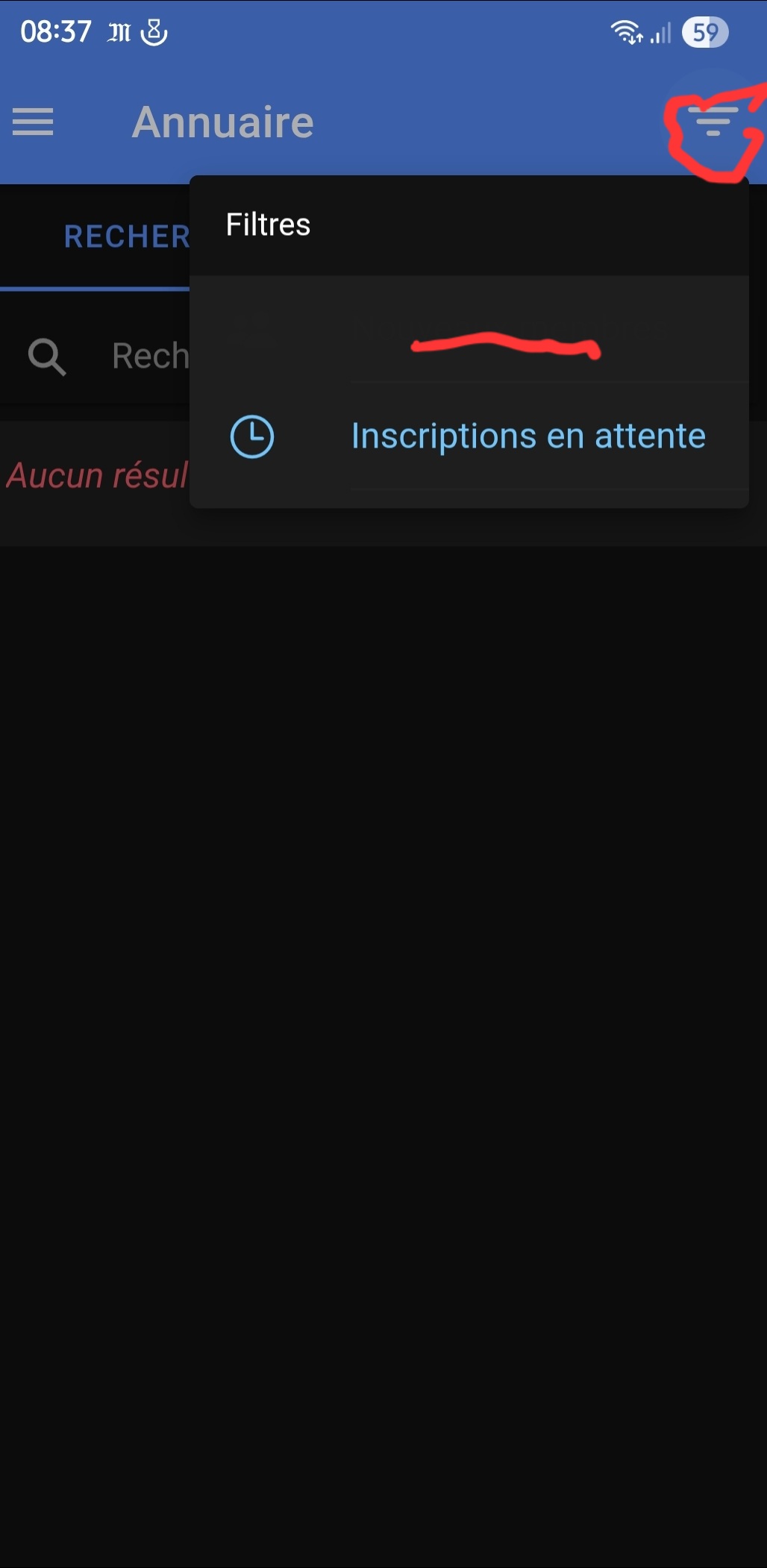 Je viens de tester cette dernière version 2.1.2, et en mode sombre on ne voit pas le filtre non actif sur l’annuaire :