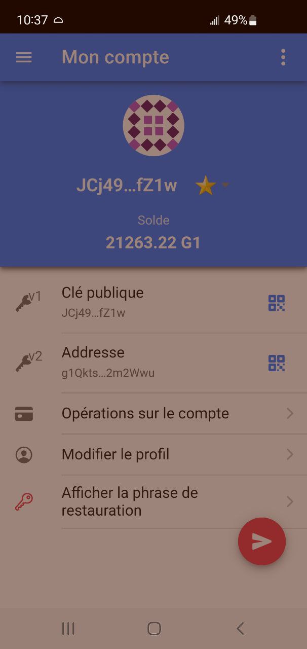 J’ai installé Cesium v2 sur un autre appareil pour faire basculer une personne de ma famille, mais lorsque je lance Cesium v2, je constate que dans “Mon compte” la clé publique v1 n’est plus la même que celle que la personne utilisait jusqu’alors. Du coup je me dis que j’ai du mer…er quelque part