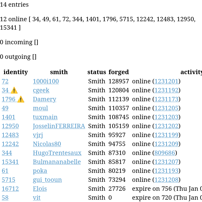 De mon point de vue tout va bien. Les statuts membres et les certifications ne vont pas expirer de ci-tôt. @BulmAnanaBelle tu as mentionné durant la réunion, que tout le monde allait expirer. Est-ce que vos instances de Panel sont bien connectées à un indexeur ĞTest et non ĞDev ?