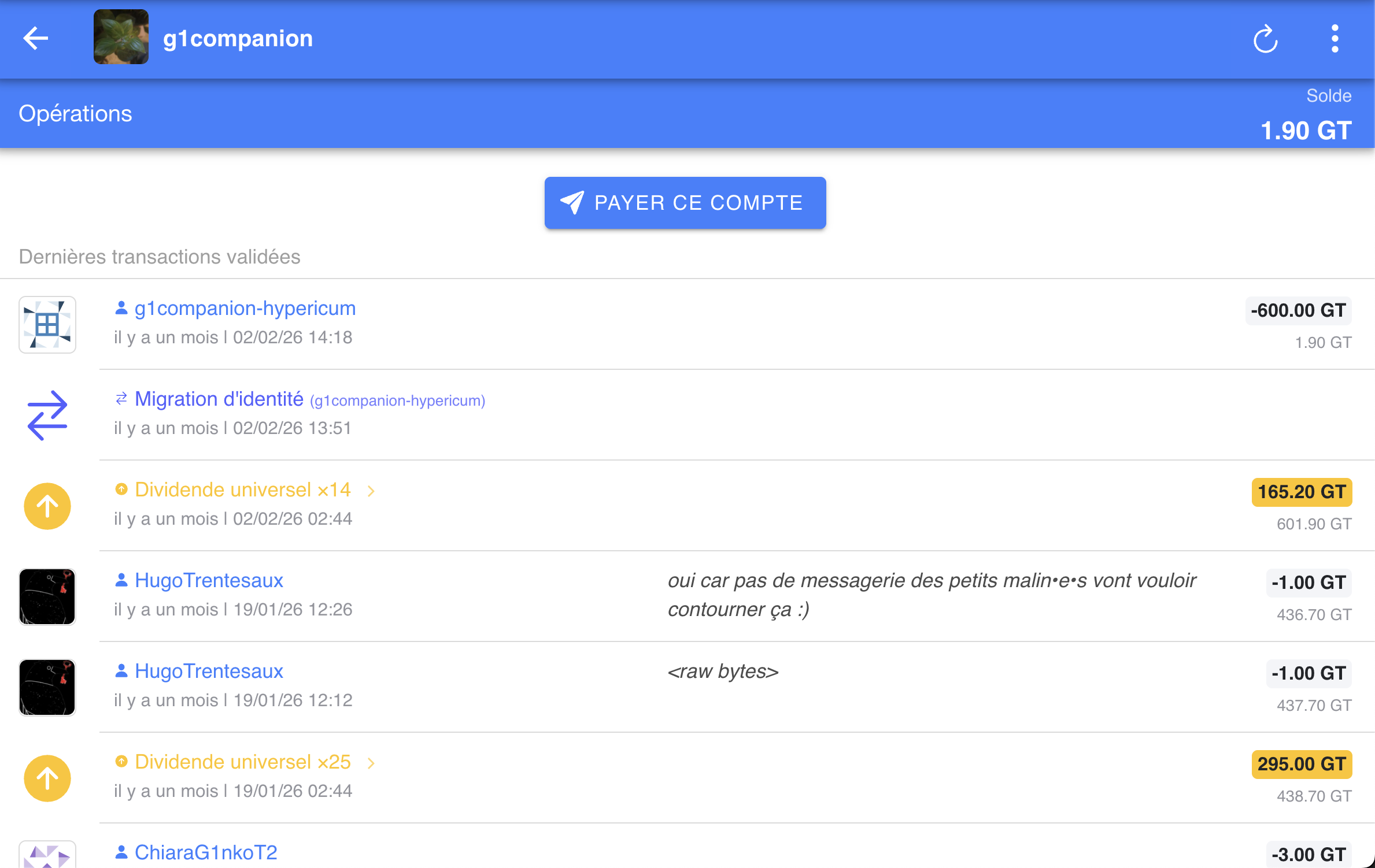 Et si vous vous demandez pourquoi sont ancien compte g1QbETyAfSn543yDZv7p7XFnesJRoxhMkNjKgH1MxR2ZDbcb3 a encore 1.9 GT, c’est parceque les 600 c’était un transfer keep alive manuel, par un transferAll, donc migration pas faite avec Gecko (g1companion je présume).
