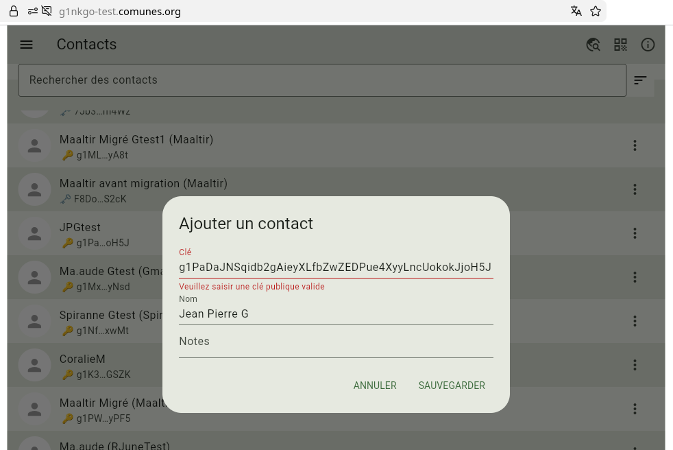 Je n’arrive toujours pas à ajouter un contact avec l’adresse au format V2