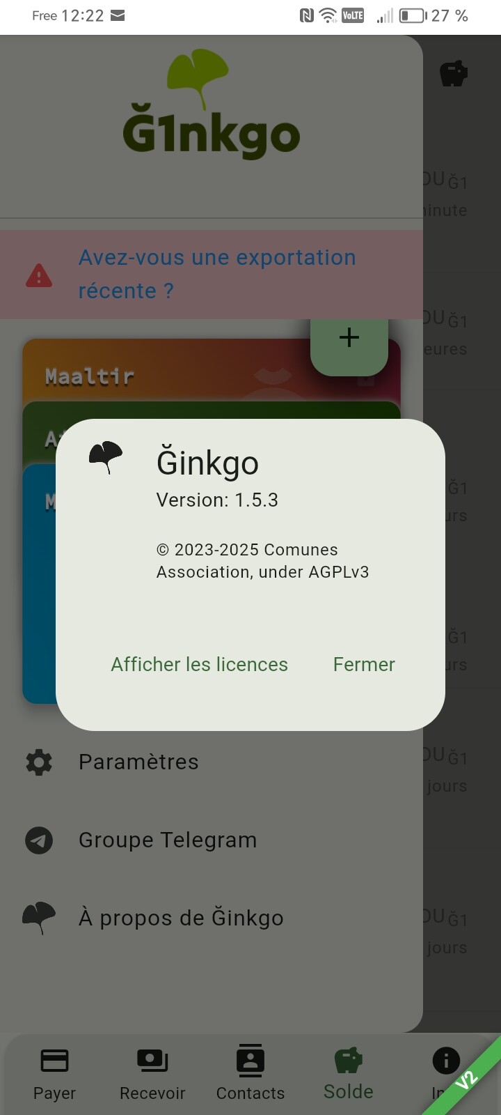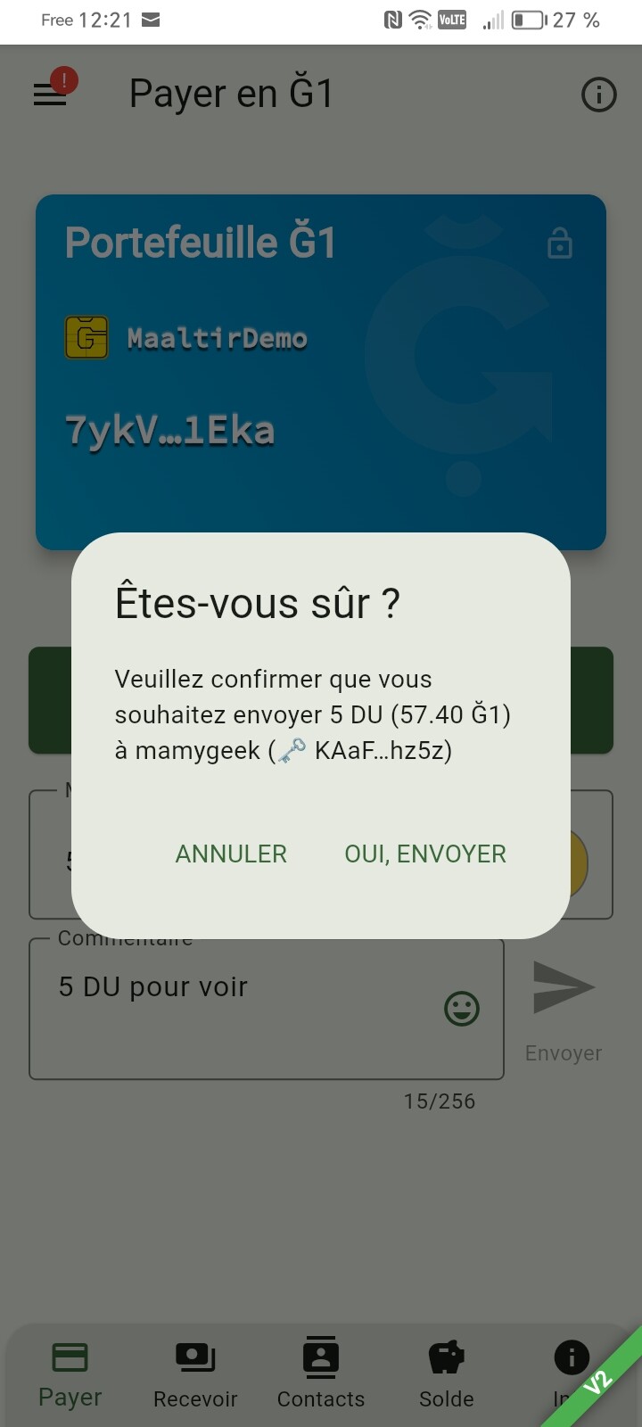 Je fais un paiement G1nkgo affiche “montant à envoyer en DU” mais le point joint indique “Ǧ1” c’est perturbant.