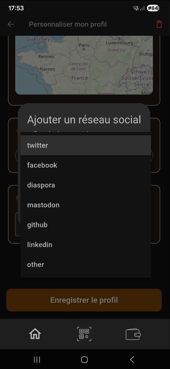 Dans le profil, Ajouter un réseau social, selon moi il manque Telegram