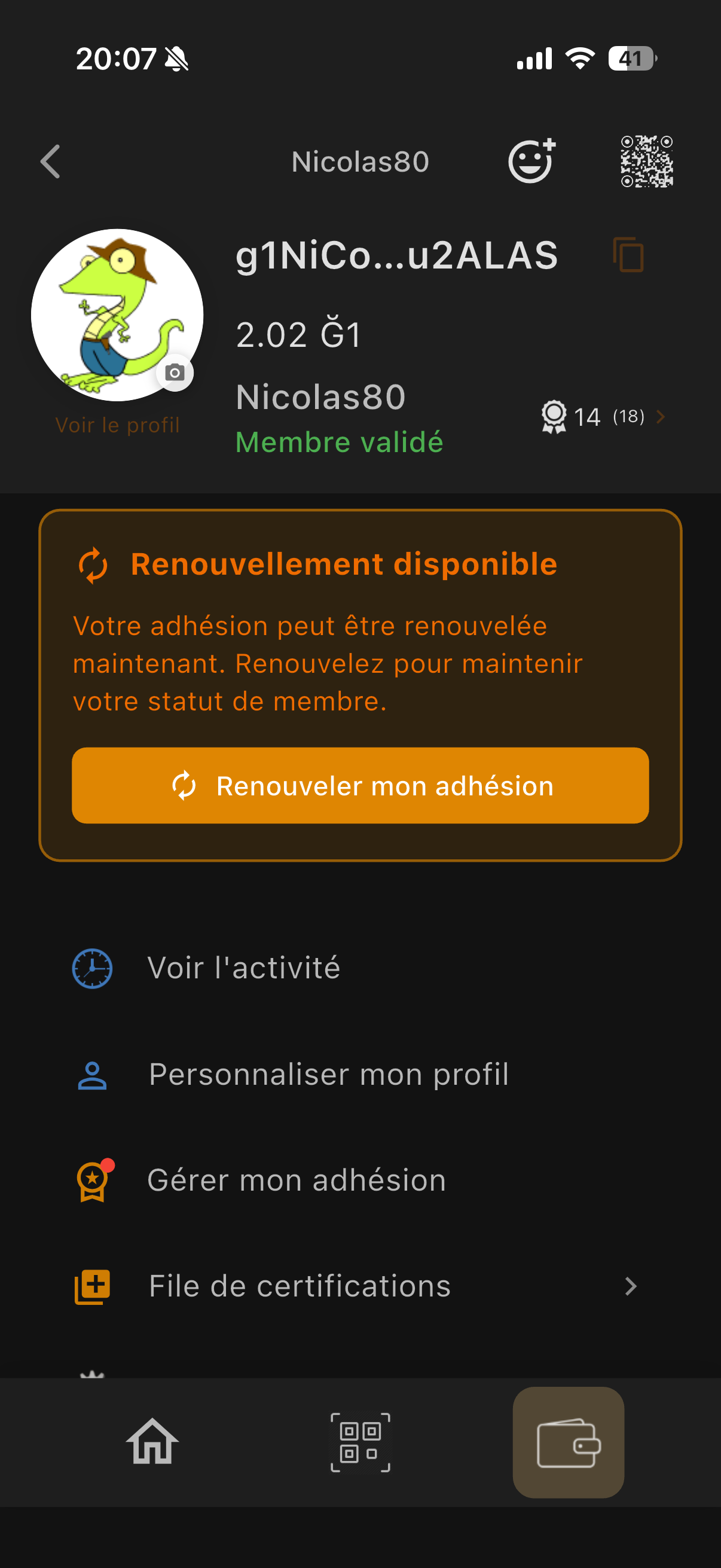 Avec gecko 1.0.4 (store iOS - pas Testflight) je viens de passer en réseau “G1” fraichement relancé, et j’ai fais la demande de “Renouveler mon adhésion” depuis la page de mon coffre.