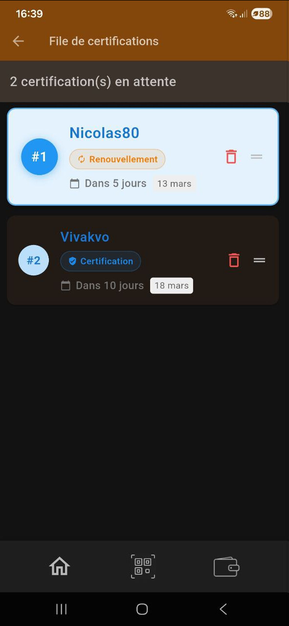 Hi, ce matin j’ai certifié Nicolas80 puis ajouté à la file des certifications son renouvellement (en V1 une certif n’étant pas renouvelable avant 18-19 mois)