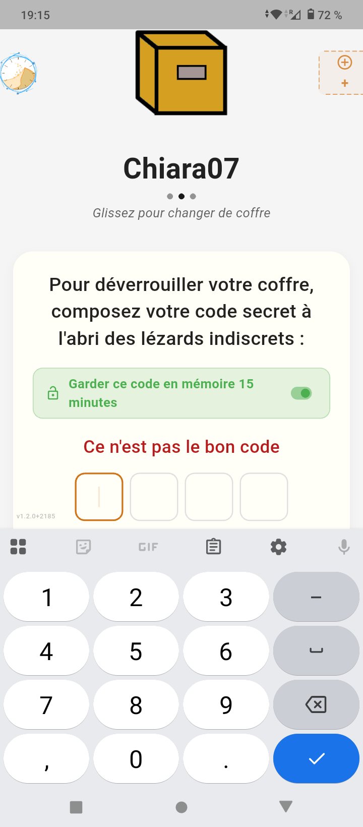 cela memorise toujours mon coffre mais pas mon code pin apres desinstallation et reinstallation