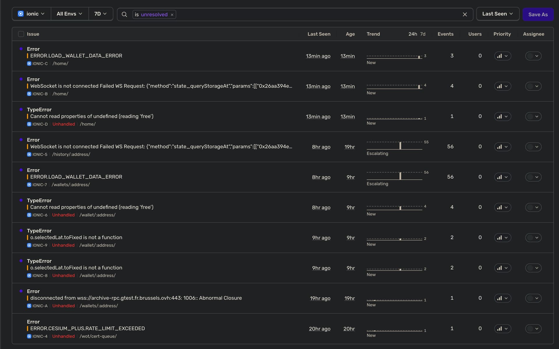 Voir notamment le nombre d’event généré par issue pour se donner une idée rapide de l’impact, avant d’aller voir le détails. Vous verrez alors généralement la ligne exact causant ce problème, toute la stack, et tous les détails nécessaire pour comprendre le contexte du problème.