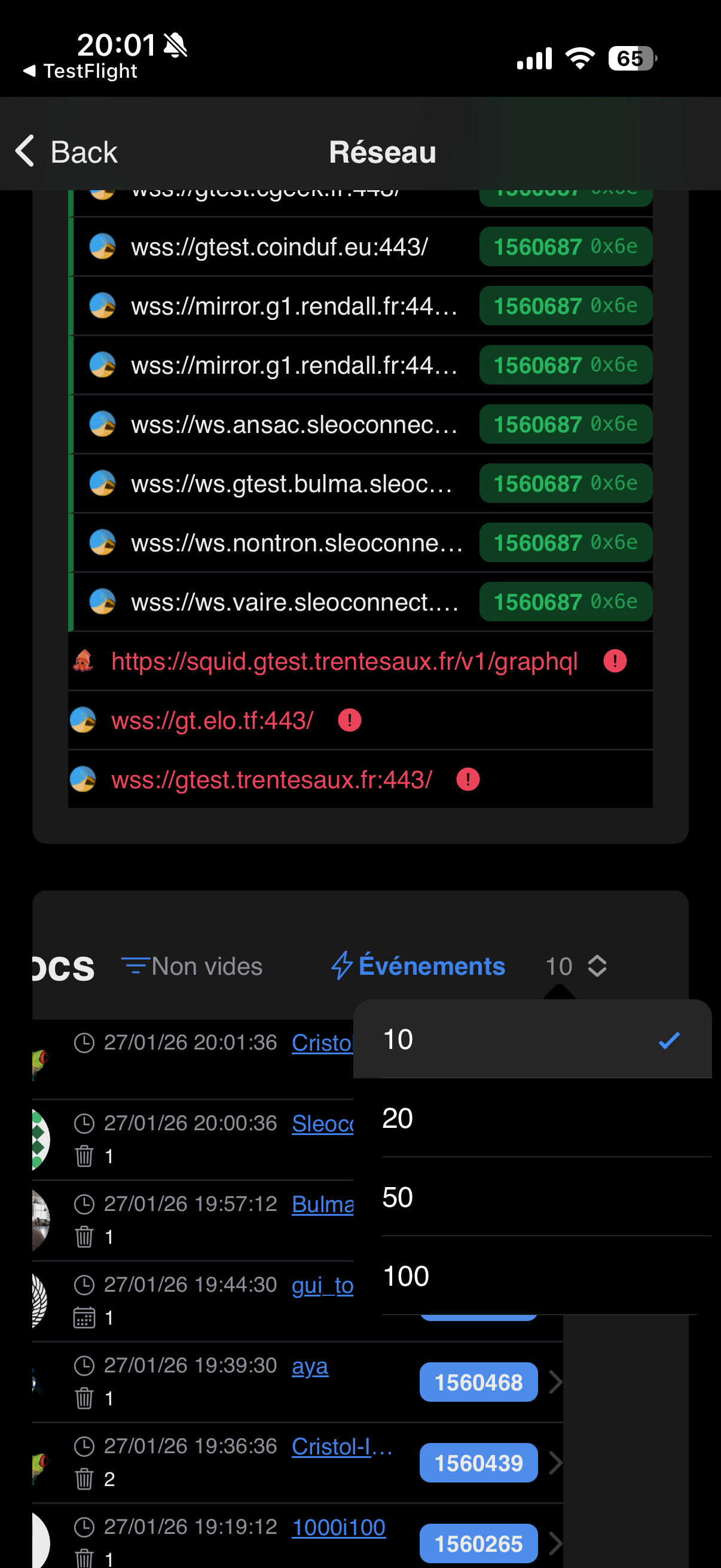 Sous iOS, petit soucis de UI dans la page réseau, si on ouvre la combo box pour changer le nombre d’éléments dans le cadre des blocks.