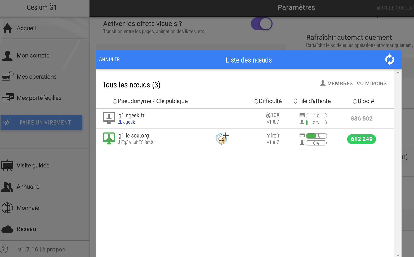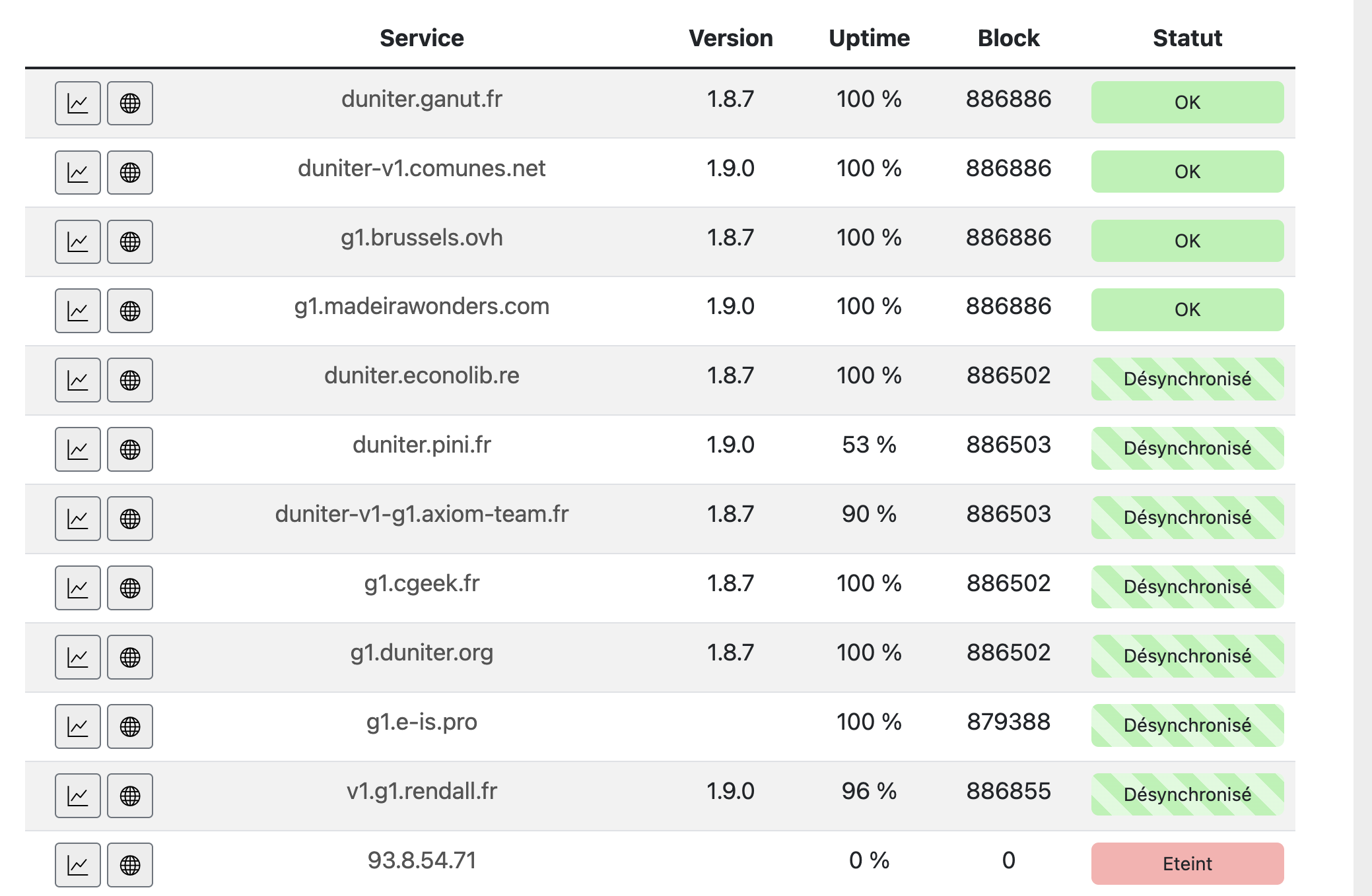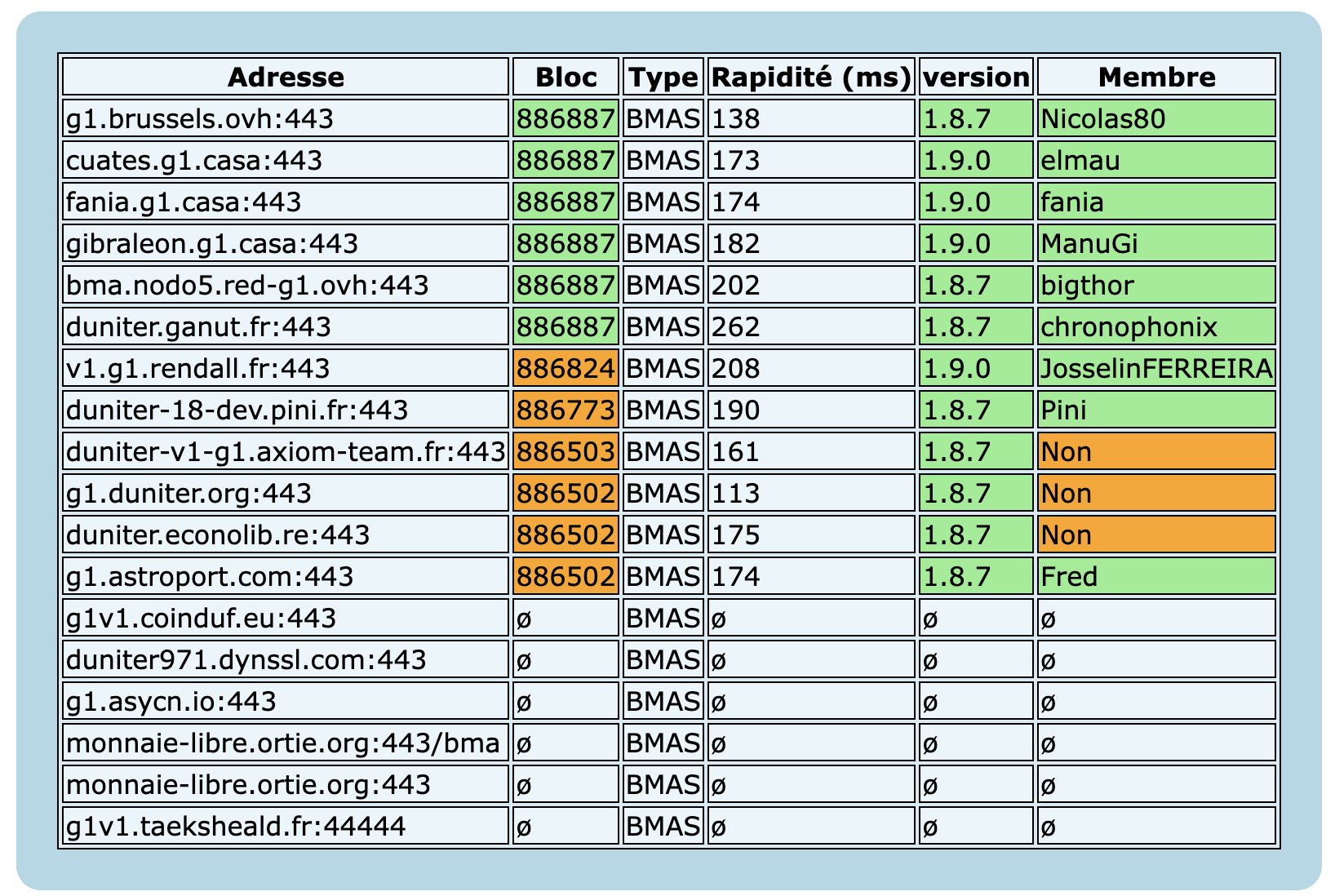 Je resynchronise mon nœud depuis g1.brussels.ovh (Nicolas80) qui est bien placé dans les trois outils. Je fais aussi les nœuds g1.duniter.org, Remuniter, WotWizard.
