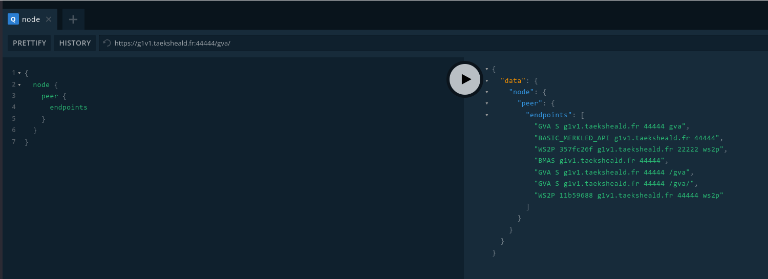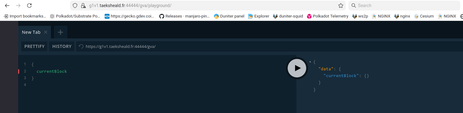 En installant gingko, je constate que les nœuds exposant le playground fonctionnent malgré que la requete ne retourne rien dans le playground.