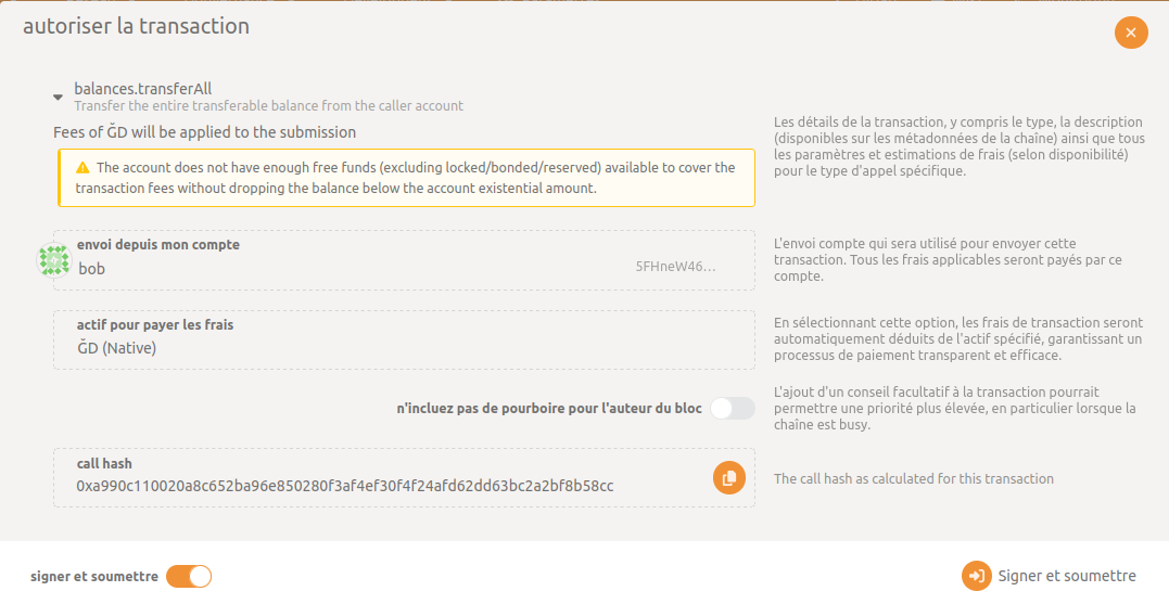 C’est également uniquement sur une chains de test local gdev que je fais ça.