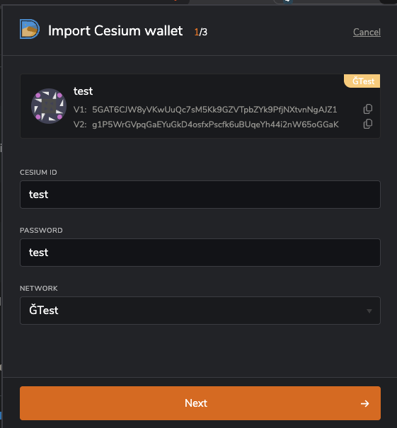 Normalement les clĂ©s âcesiumâ/g1v1 sont supportĂ©es dans gcli depuis un certain temps.