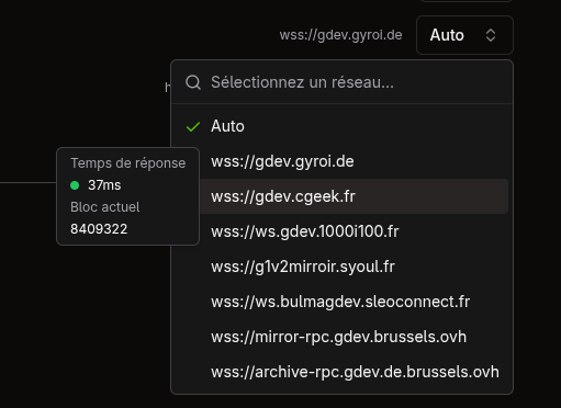 Je crois qu’on est globalement sur la même approche (de toute façon je n’en vois pas beaucoup d’autres possibles), simplement je choisis de systématiser le scan réseau, mais en arrière-plan. C’est-à-dire que l’app se connecte très rapidement à un nœud bootstrap ou mis en cache, mais en arrière-plan un scan se fait pour peupler le cache Network. Si un meilleur nœud est trouvé (fork majoritaire), alors l’app switch simplement de endpoint (et doit relancer le scan de Squid du coup, toujours en arrière-plan, pour être sûre de toujours être sur une paire Duniter/Squid cohérente).