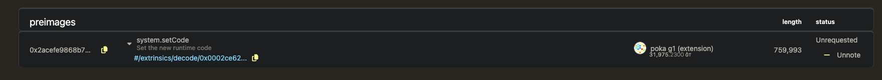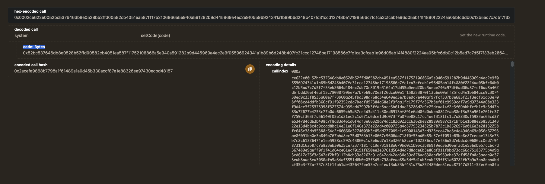 2c. Cliquez sur le lien du system.setCode de la preimage pour voir le runtime associé.