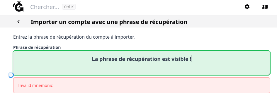Est-ce qu’il n’y a pas moyen de faire la distinction entre l’utilisateur qui importe son compte en fournissant son mnémonique (mieux de le cacher par défaut), et le fait de créer un nouveau compte (et mnémonique) pour l’utilisateur ?